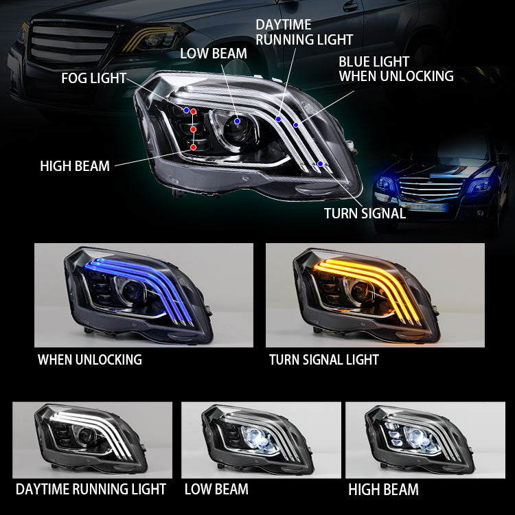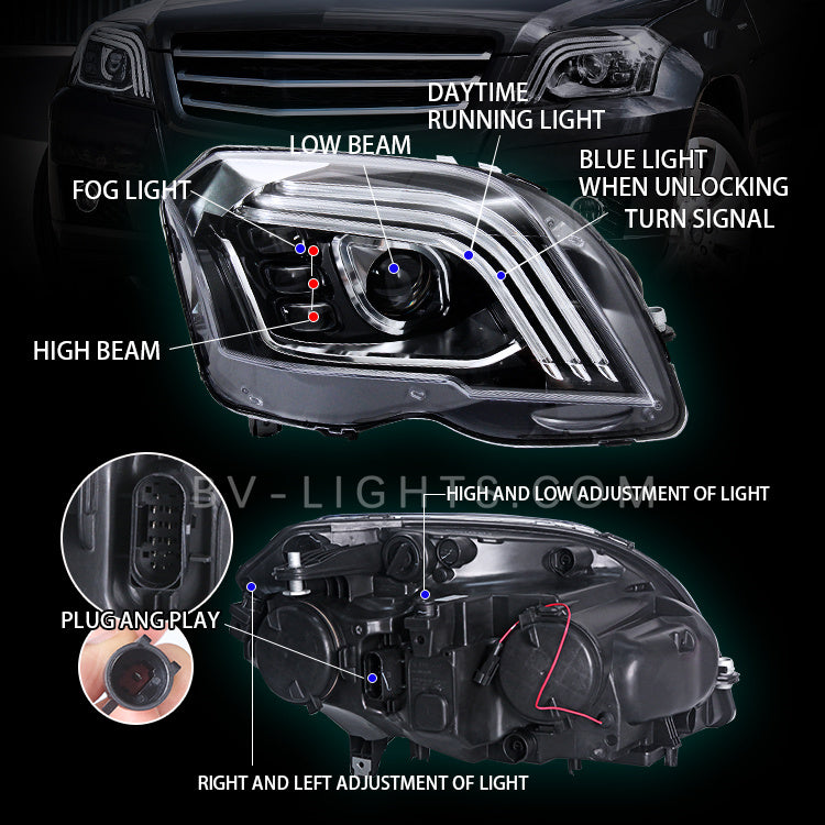 Mercedes-Benz GLK 2008-2012 Modified headlight assembly Upgrade LED headlights led lens Daytime running light