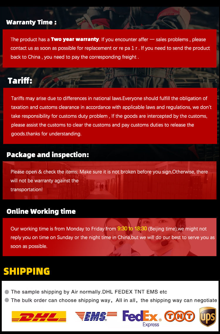 - We use reputable couriers like UPS, and DHL,FedEx,TNT,YunExpress,EMS. all items will be tracked for your peace of mind.