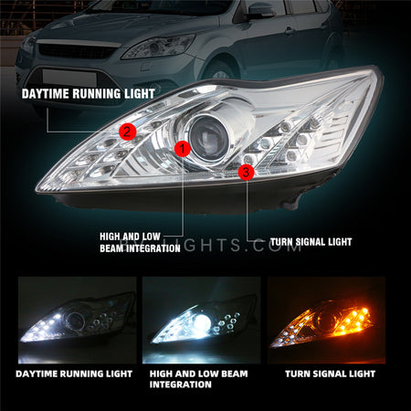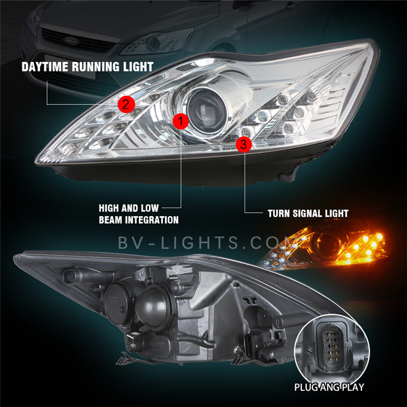 Revitalize your Ford Focus (2009-2012) with BV-lights' advanced car headlights. Our front lamps, custom-made for Ford models, revolutionize the concept of headlamp restoration. They seamlessly integrate with your vehicle, elevating your Ford's road presence and outperforming standard factory headlights in both style and functionality.