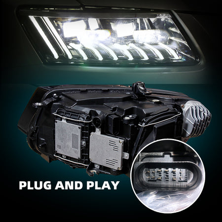Our headlamps undergo extensive testing to ensure reliability and superior performance, perfectly aligning with your Audi's specifications. The "plug and play" installation process is designed for simplicity, making these headlights ideal for both Audi enthusiasts and auto shops specializing in high-end driving light restoration.