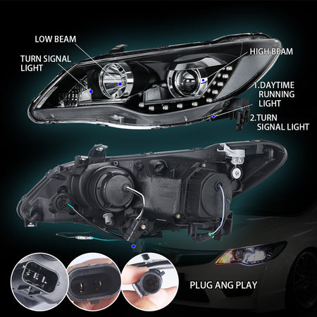 Revitalize your Honda Civic/Ciimmo/FD1/FD2 (2012-2015/2006-2011) with BV-lights' advanced car headlights. Our front lamps, custom-made for Honda models, revolutionize the concept of headlamp restoration. They seamlessly integrate with your vehicle, elevating your Honda's road presence and outperforming standard factory headlights in both style and functionality.