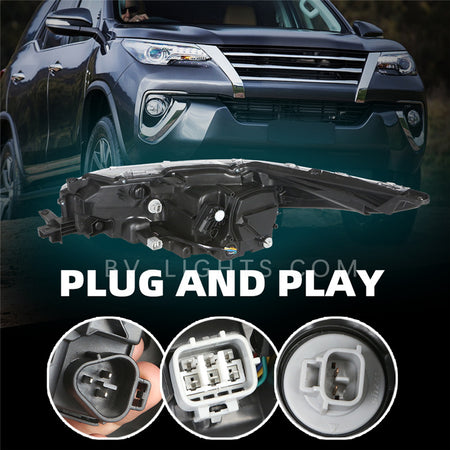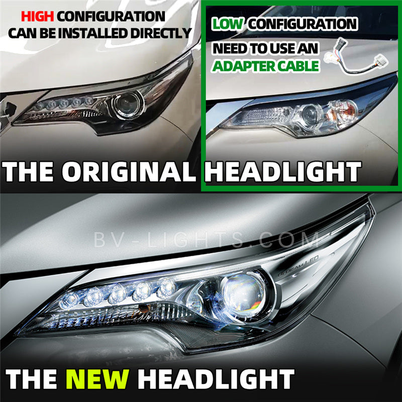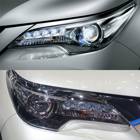 Revitalize your Toyota Fortuner (2018-2022) with BV-lights' advanced car headlights. Our front lamps, custom-made for Toyota models, revolutionize the concept of headlamp restoration. They seamlessly integrate with your vehicle, elevating your Toyota's road presence and outperforming standard factory headlights in both style and functionality.