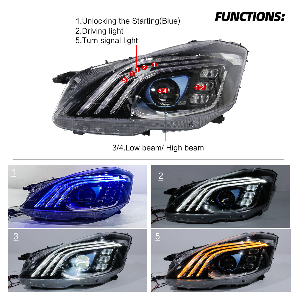 Revitalize your Mercedes Benz S class W221 (2006-2013) with BV-lights' advanced car headlights. Our front lamps, custom-made for Mercedes Benz models, revolutionize the concept of headlamp restoration. They seamlessly integrate with your vehicle, elevating your Mercedes Benz's road presence and outperforming standard factory headlights in both style and functionality.