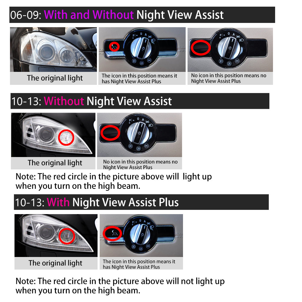 - Fit or Original Headlight Euro type without Night View Assist and Euro type with Night View Assist
