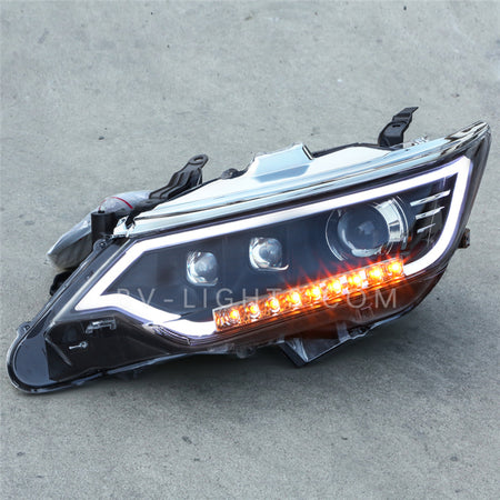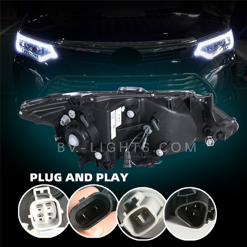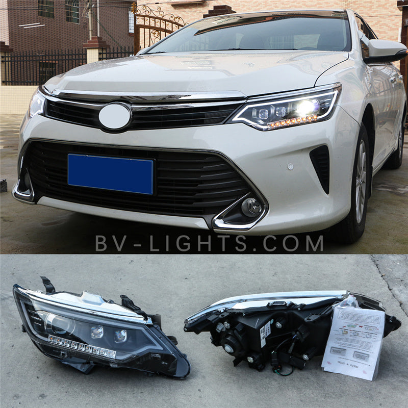 Revitalize your Toyota Camry 7.5th gen (2015-2017) with BV-lights' advanced car headlights. Our front lamps, custom-made for Toyota models, revolutionize the concept of headlamp restoration. They seamlessly integrate with your vehicle, elevating your Toyota's road presence and outperforming standard factory headlights in both style and functionality.