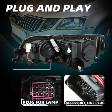 Our headlamps undergo extensive testing to ensure reliability and superior performance, perfectly aligning with your Skoda's specifications. The "plug and play" installation process is designed for simplicity, making these headlights ideal for both Skoda enthusiasts and auto shops specializing in high-end driving light restoration.