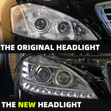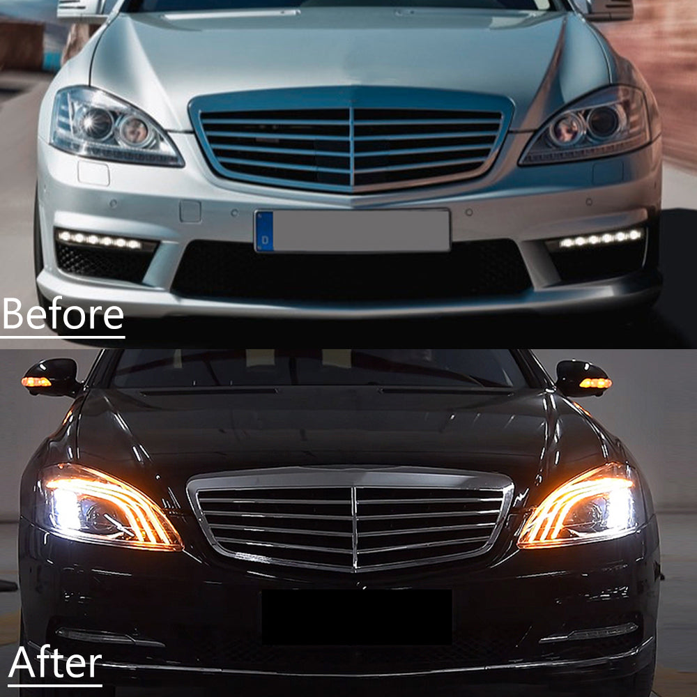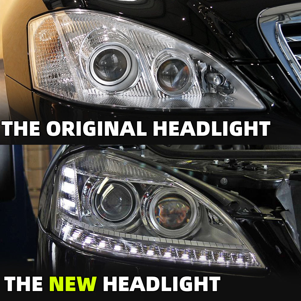 Revitalize your Mercedes Benz S class S350 W221 (2006-2009) with BV-lights' advanced car headlights. Our front lamps, custom-made for Mercedes Benz models, revolutionize the concept of headlamp restoration. They seamlessly integrate with your vehicle, elevating your Mercedes Benz's road presence and outperforming standard factory headlights in both style and functionality.