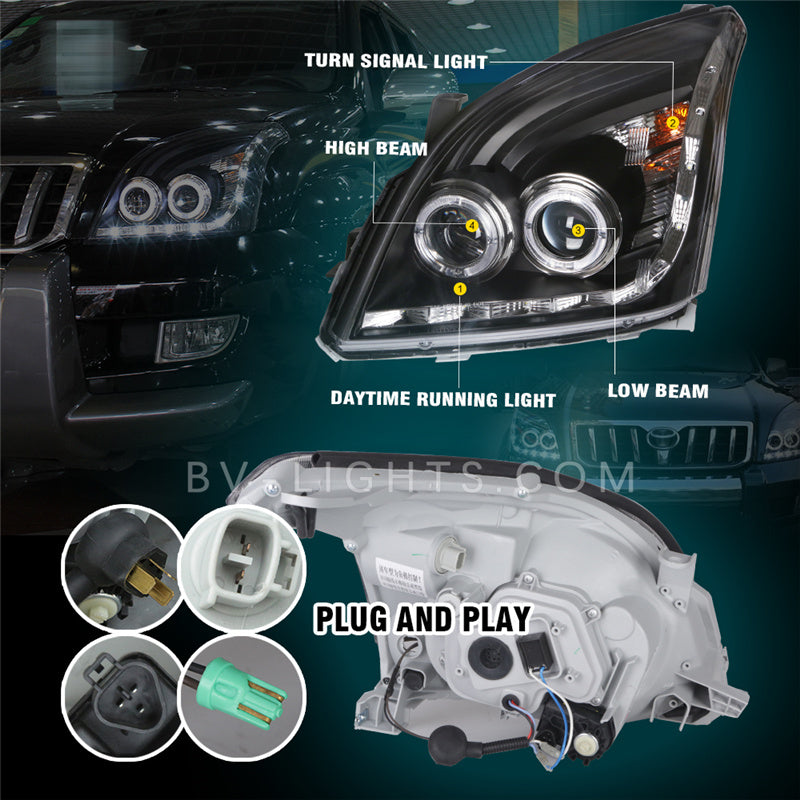 For Toyota Land Cruiser / Prado FJ120 2003-2009 upgrade Modified led Headlight with DRL light