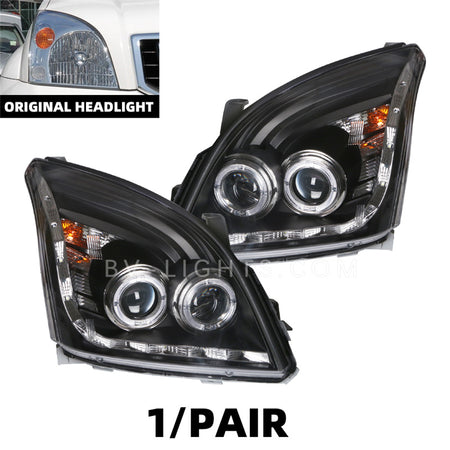 Revitalize your Toyota Land Cruiser / Toyota Prado FJ120 (2003-2009) with BV-lights' advanced car headlights. Our front lamps, custom-made for Toyota models, revolutionize the concept of headlamp restoration. They seamlessly integrate with your vehicle, elevating your Toyota's road presence and outperforming standard factory headlights in both style and functionality.