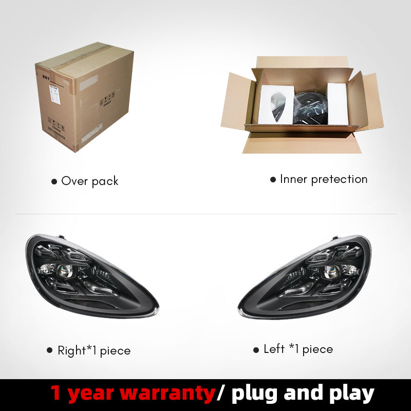 Our headlamps undergo extensive testing to ensure reliability and superior performance, perfectly aligning with your Porsche's specifications. The "plug and play" installation process is designed for simplicity, making these headlights ideal for both Porsche enthusiasts and auto shops specializing in high-end driving light restoration.