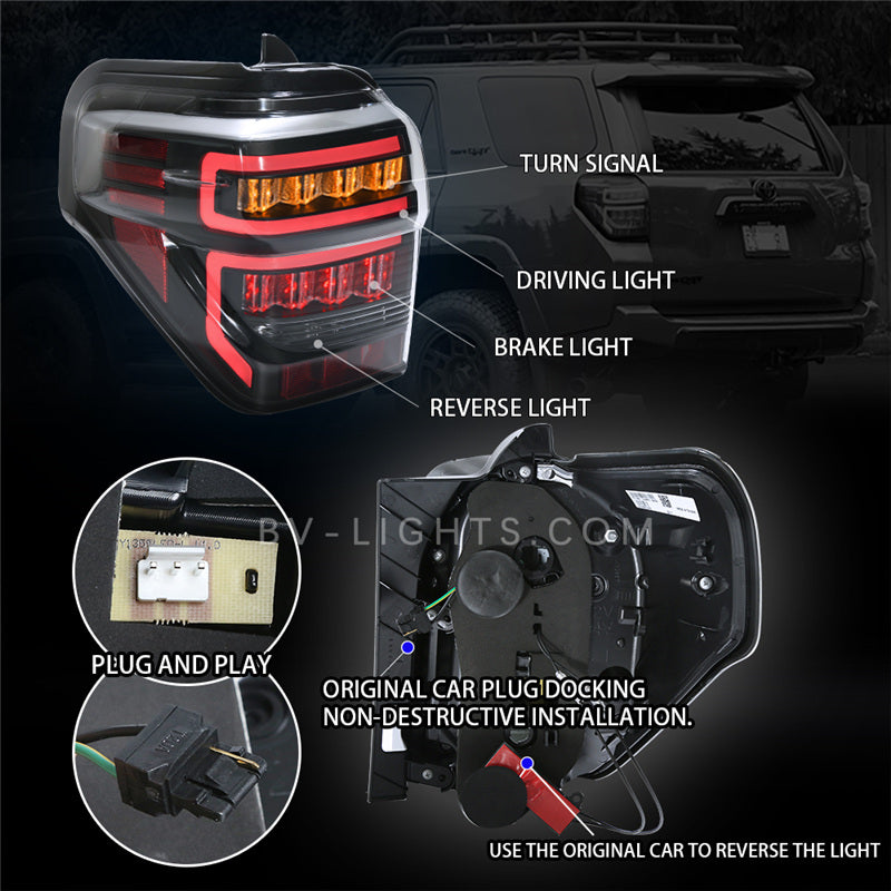 Elevate your Toyota 4 Runner (2014-2020) with BV-lights' exclusive Tail Lights. Our Tail Lights, meticulously crafted for Toyota models, set a new standard in rear light restoration. Designed for a perfect fit, they elevate your Toyota’s aesthetics and functionality, outshining standard factory Back Lights.